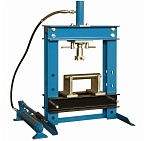 Настольный. Занимает мало места. Основные функции выполняет. Для гаража. Гидравлический, ручной, сборно-разборный. Гидроцилиндр с пуансоном имеет возможность перемещения по всей ширине рамы. Для запрессовки деталей механизмов. Усилие 10 тонн. Интервал пуансона 135 мм. Рабочее окно: 400 x 350 мм.