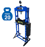Усилие 20 тонн. Пневмогидравлический привод — рекомендуется для увеличения скорости работы неответственных деталей (втулки), где есть поток по выпрессовки, ручной привод — для точного дозирования усилия ответственных деталей (подшипники). Манометр, гидроцилиндр с пуансоном перемещается по всей ширине рамы. Управление ручное/пневматическое. Ход поршня 0-150 мм. Рабочее окно 500х1030 мм. Доставка по РФ и ТС.