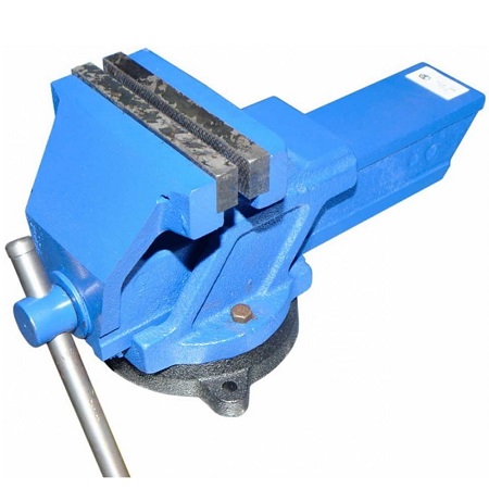 Тиски слесарные поворотные 0°-360° с наковальней. Материал: чугун СЧ20 (серый чугун) ГОСТ 1412-85. Губки сменные 125мм. Ход 110мм. Зажим 3059кгс. Вес: 13 кг. Габариты: 385х180х200 мм. Сделано в Белоруссии.