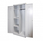 Шкаф металлический сборный двухсекционный. Шкаф окрашен порошковой краской светло-серого цвета RAL 7035. Размеры: 1850x800x500 мм.