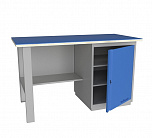 Однотумбовый. Допустимая нагрузка на столешницу 750 кг. Опорные элементы выполнены сварными из холоднокатаной стали. Для выполнения сборочных, ремонтных, слесарных, монтажных и других видов работ на производстве, в сервисных центрах, мастерских, гаражах, а также для обучения технологии в учебных заведениях. Комплектуется полкой-стенкой, расположенной под столешницей для удобного размещения габаритного инструмента и оснастки. Размеры верстака: 855x1596x696 мм. Вес: 65 кг. Поставляется в 4 комплектациях на выбор.