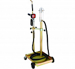 Для бочек 20-60 кг. Установка оснащена тележкой, пневматический насос для масла 3:1 производительность 18л/мин, шланг 4 м, раздаточный пистолет с электронным счетчиком. Колёса 2 прямых + 2 поворотных. Масса: 25,5 кг.