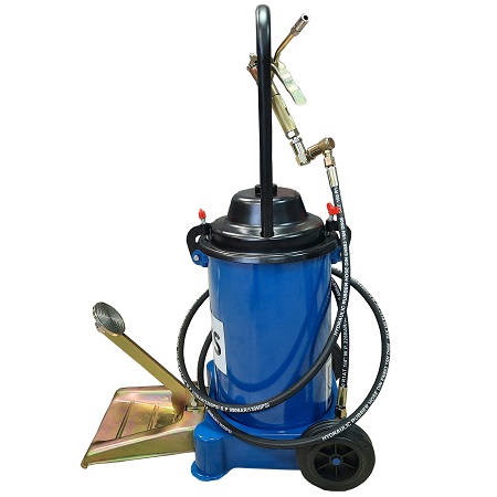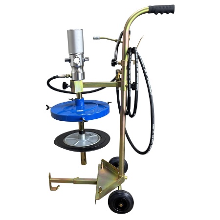 Нагнетатель предназначен для раздачи густой смазки из бочек объемом 190 л. Состоит из 2-х независимых и раздельных насосных систем, что предотвращает попадание отработанной влаги компрессора в емкость с перекачиваемым маслом. Длина шланга: 6 м. Давление смазки: 180-405 бар. Коэффициент передачи давления: 5:1. Производительность: 30 см³/с. Длина раздаточного шланга: 305 см. Вес: 15,5 кг.
