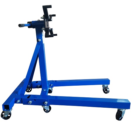 Складной. Для сборки / разборки цилиндропоршневой группы 6-х цилиндровых ДВС с навесным оборудованием и 8 цилиндровых без навесного оборудования г/п. до 907 кг. Позволяет вращать двигатель на 360°. С 4-мя регулируемыми кронштейнами для удобства вывешивания и обслуживания ДВС легковых авто. Оснащен П - образной рамой с 6 поворотными колесами.
