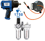 Комплект включает: ES-7127 Пневмогайковерт на 1/2 дюйма, производительностью 1750 Нм. + Регулятор давления воздуха с лубрикатором, влагоотделителем и манометром. + Катушка для подключения пневмоинструмента 10 метров. Данный комплект идеально подойдет для слесарных и шиномонтажных постов с средней и высокой проходимостью.