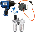 Комплект включает: ES-7125 Пневмогайковерт на 1/2 дюйма, производительностью 1560 Нм. + Регулятор давления воздуха с лубрикатором, влагоотделителем и манометром. + Катушка для подключения пневмоинструмента 10 метров. Данный комплект идеально подойдет для слесарных и шиномонтажных постов с средней и высокой проходимостью.