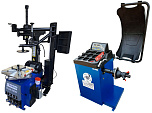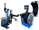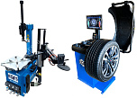 Комплект из автоматического шиномонтажного станка TS-3226А. Для дисков: 11÷24”. В комплекте: полноценная 3-й рука для работы с жесткой и низкопрофильной резиной RUNFLAT. + встроенный бустер  24 литра (взрывная подкачка) + пистолет для подкачки шин + монтажка + регулятор давления с влагоотделителем и манометром. + Proxy-8-3 автоматический балансировочный станок для колес с диаметром диска 9-28 дюймов, при ручном вводе до 30 дюймов и шириной до 20 дюймов. В комплекте: монитор SVGA + кожух с автозапуском + клещи + кронциркуль + пневмоприжим + набор конусов + лазерная навигация + электромагнитный тормоз + ультразвуковой датчик ширины.