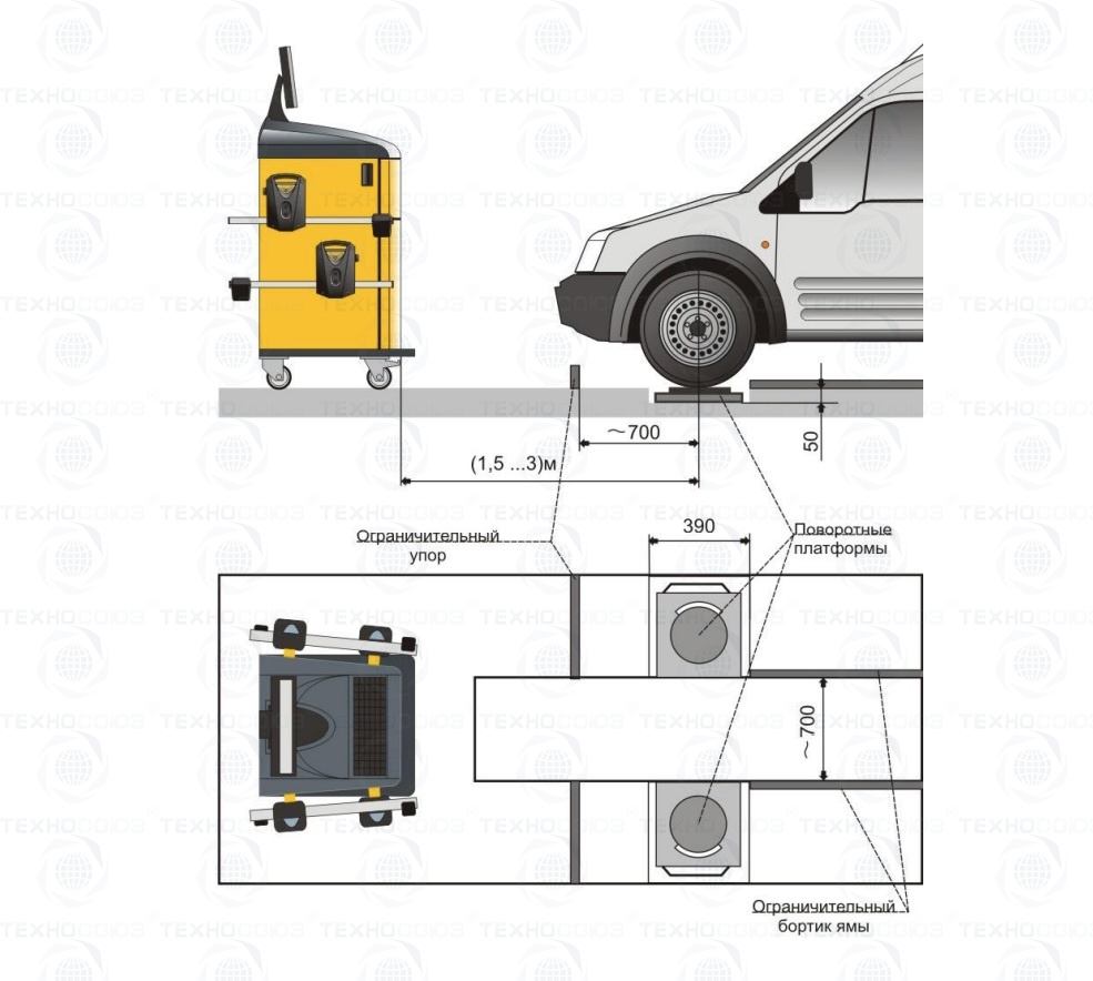 Для колес легковых автомобилей с диаметром обода 12-24 дюйма. Блоки измерительные оснащены электронными уровнями и подключаются к компьютеру посредством кабелей. Работа стенда возможна на 4-х стоечном подъемнике или на ремонтной яме, при обязательном соблюдении требовании по горизонтальности. Без подкатной тумбы.