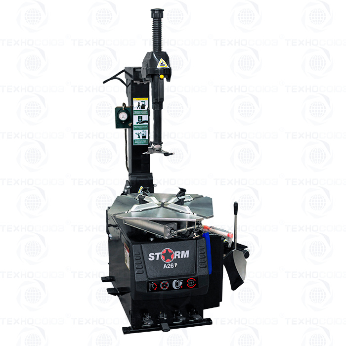 Автоматический шиномонтажный стенд с пневматической фиксацией. Предназначен для работы с дисками до 26”. В станок встроена система быстрой накачки шин, которая позволит оператору освободить руки и ускорить процесс работы.
