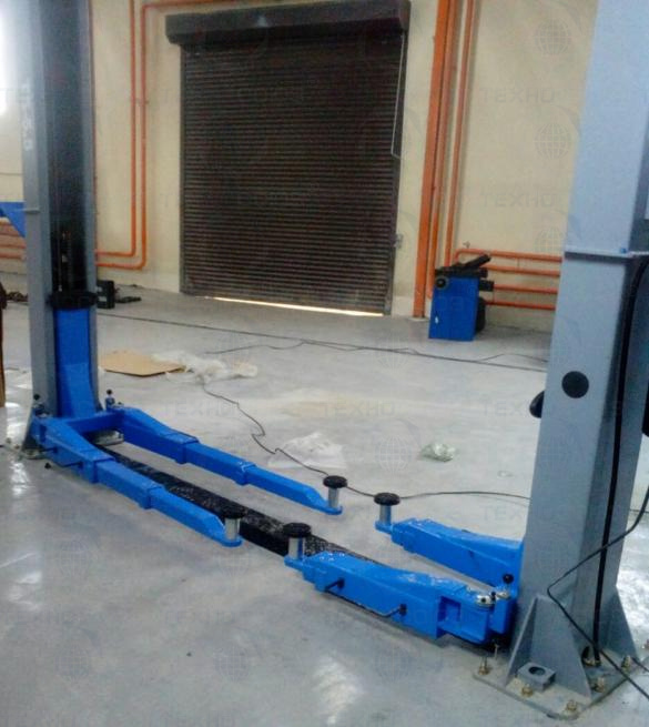 Колонны подъемника оснащены стопорным механизмом, предотвращающим падение автомобиля.