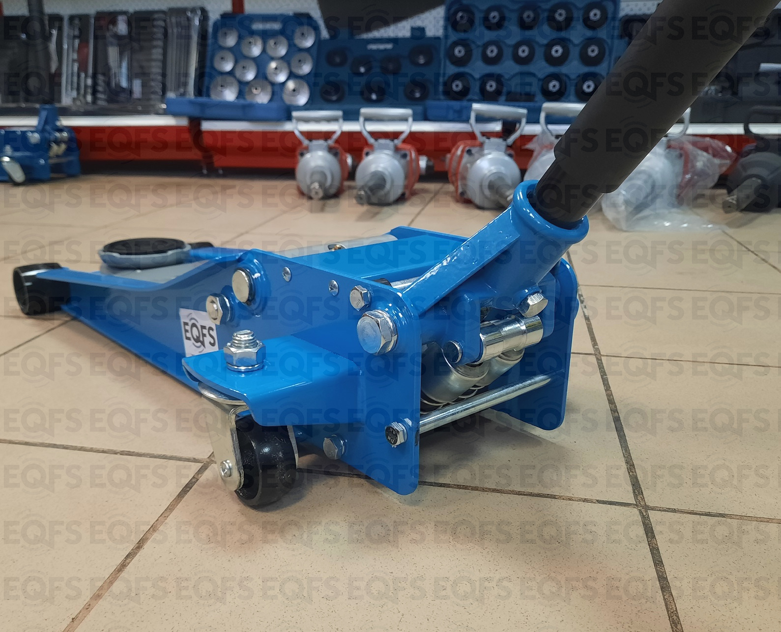 Домкрат подкатной low profile рекомендуется к применению в шиномонтажных мастерских и автосервисах для поднятия автомобилей с низким клиренсом. Цвет темно-синий.