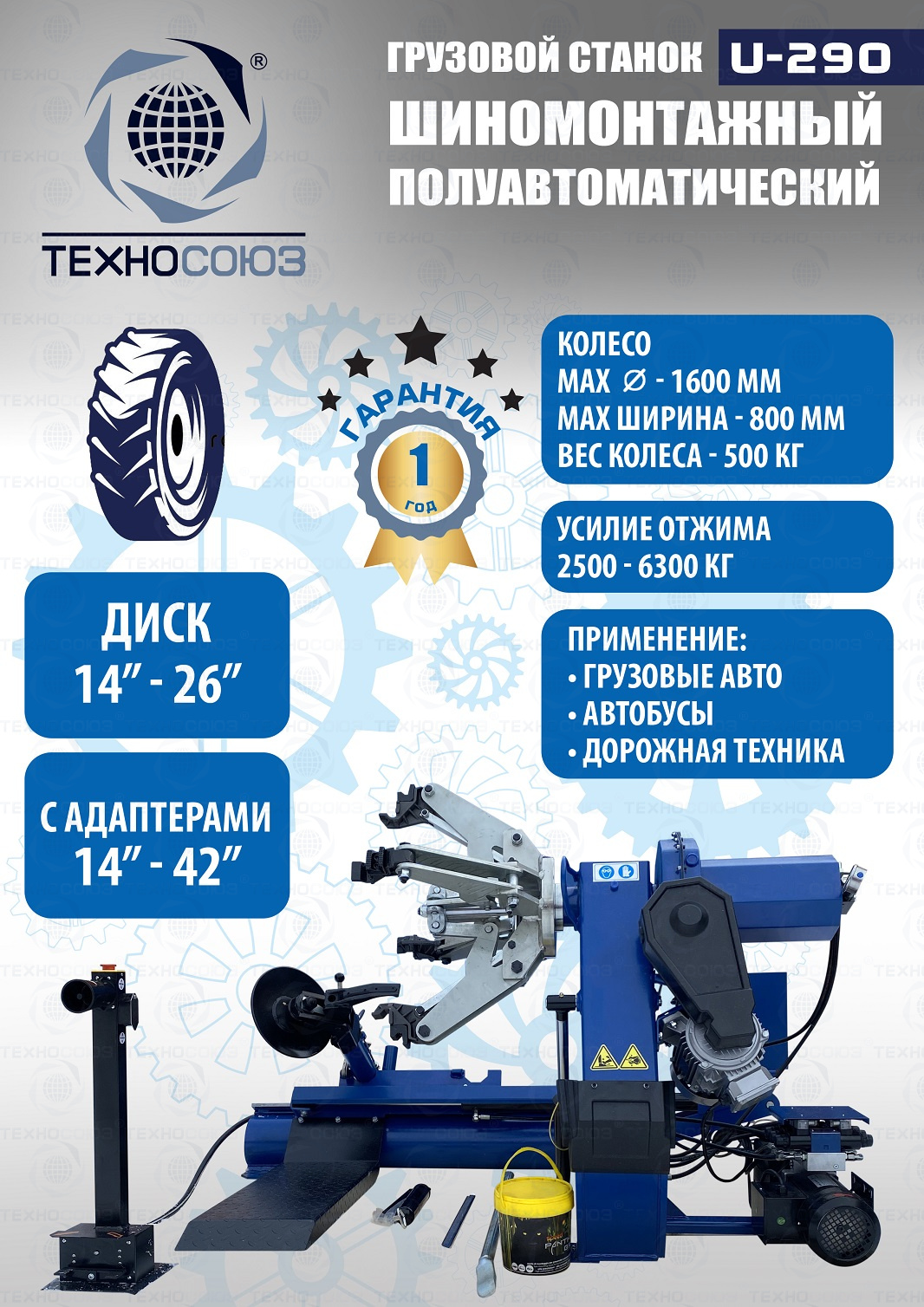 На станке установлены Моторы 1,8 + 2,2 кВт - у конкурентов 1,5 + 1,8 кВт. Диски сталь, AL, с кольцами и без, 14÷26” с адаптерами 14÷42”, Колесо макс. Ø 1600 ширина 780 мм, до 500кг. Отжим min-max. 2500-6300 кг.  Для грузового шиномонтажа автомобилей, автобусов, дорожной техники, сельхозмашин. Доставка по России, Белоруссии, Казахстану, Армении и Киргизии.