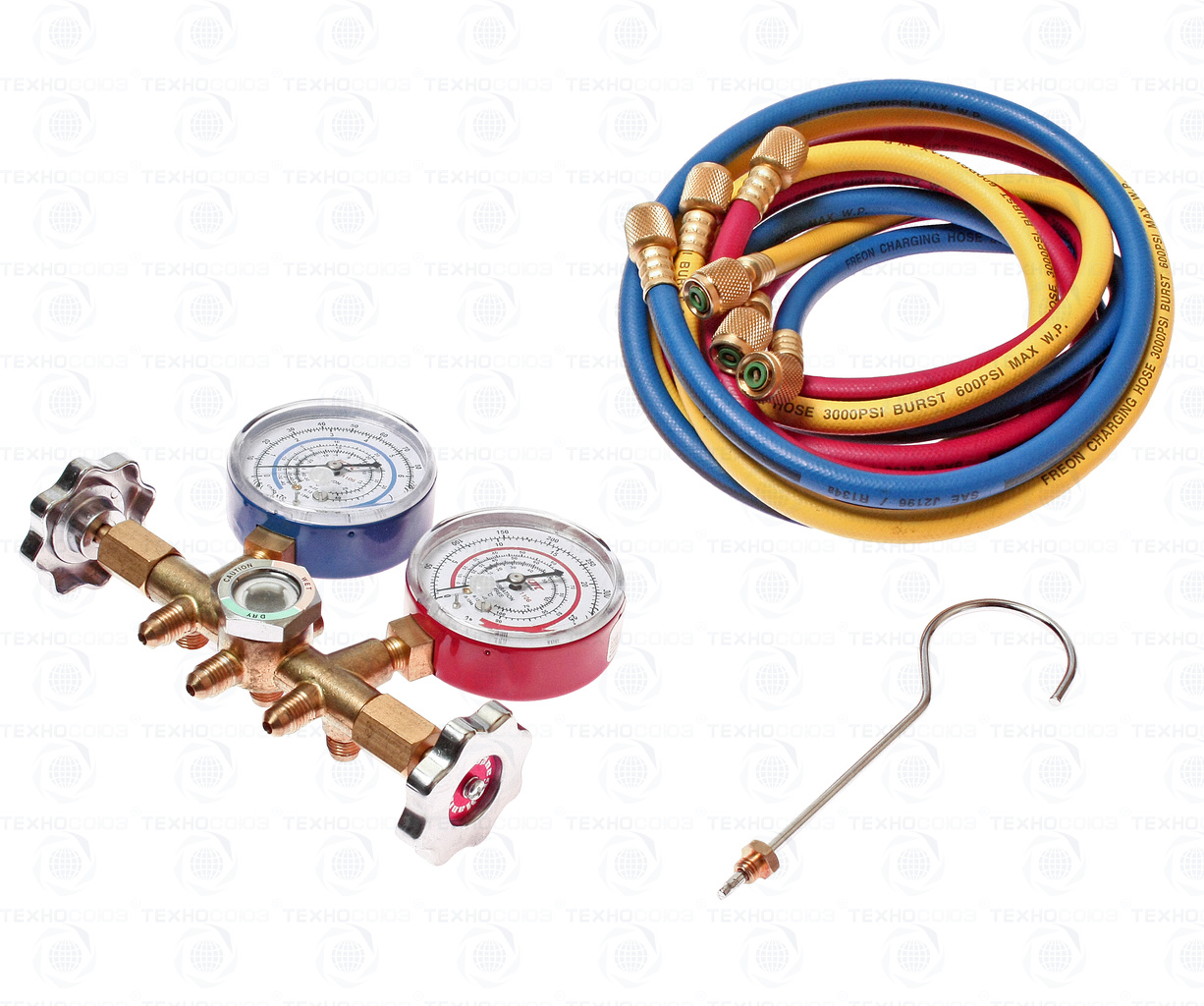 • Манометрический коллектор для хладагента R-12, оснащенный 3-мя цветными шлангами длиной 150 см.