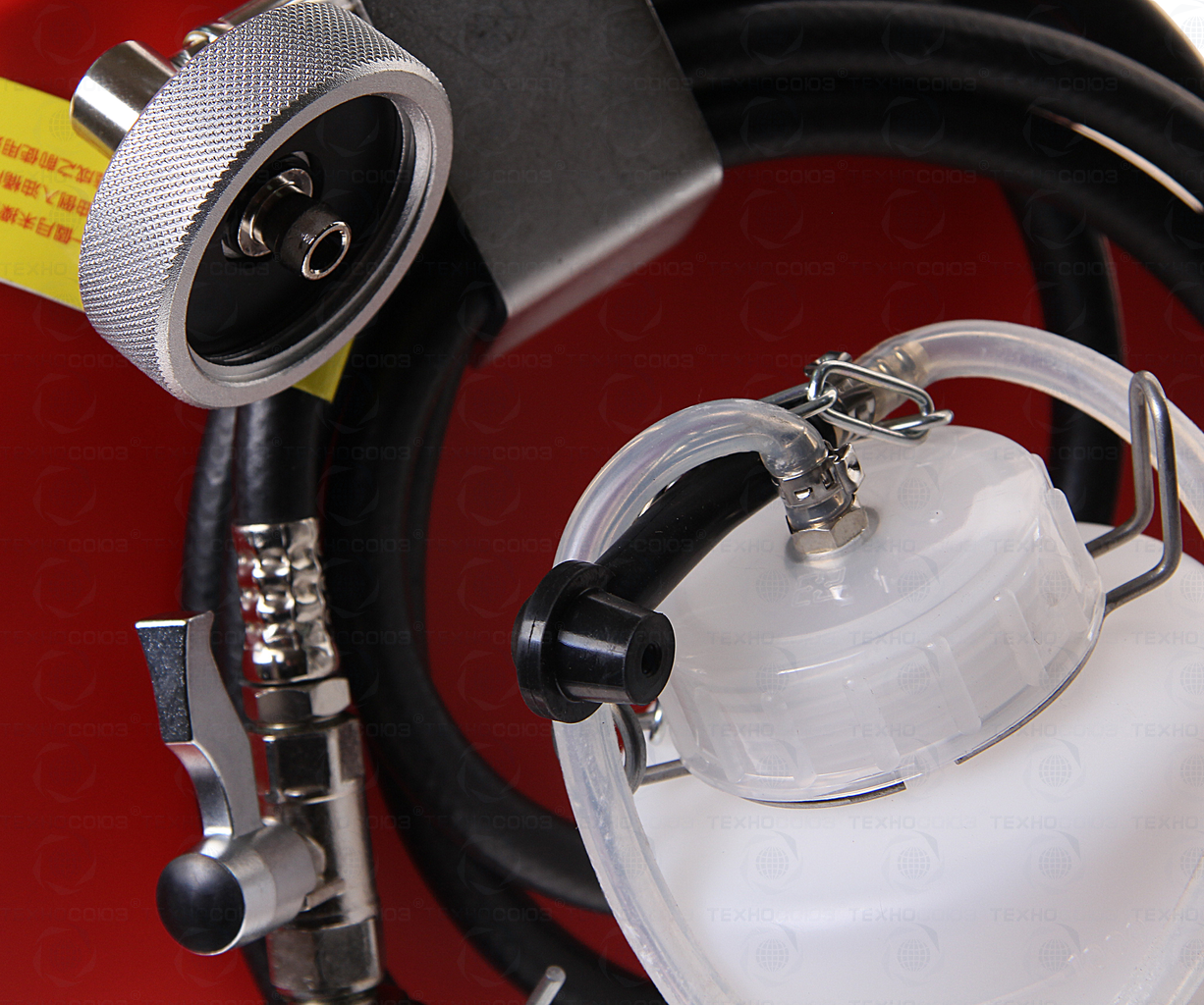 • Оснащается двумя двухлитровыми ёмкостями для сохранности свежей тормозной жидкости для её дальнейшего использования.