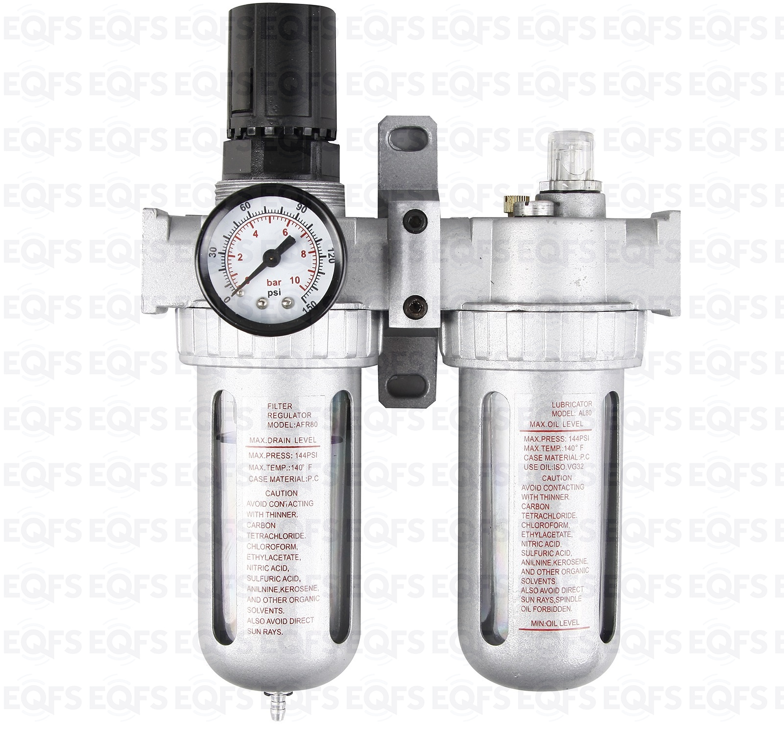Регулятор давления воздуха с лубрикатором, влагоотделителем и манометром. Для подключения одного или нескольких пневмоинструментов – 2000 л/мин. Снижает давление между компрессором и пневмоинструментом. Регулятор давления воздуха с лубрикатором, влагоотделителем и манометром вход/выход - ½”. Давление компрессора 8÷10Бар.