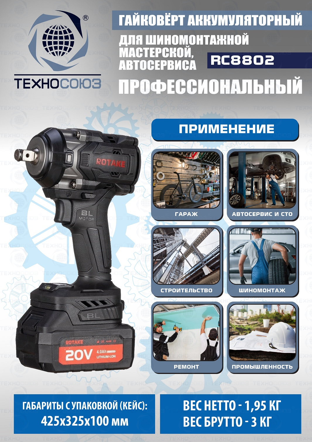 Технические особенности аккумуляторного ударного гайковерта RC8802: