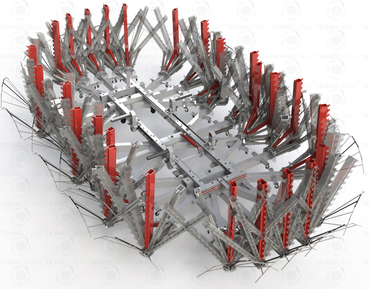 Два различных силовых устройства, каждое оснащено гидроцилиндром 10т. 2-х шарнирное силовое устройство - удобно для создания противовектора тяги и дополнительной фиксации кузова автомобиля на стапеле. 3-х шарнирное силовое - более гибкий подход к выбору направления вектора тяги. Силовые устройства могут устанавливаться в 7 посадочных мест, при этом общее число положений силового устройства достигает 140 вариантов.