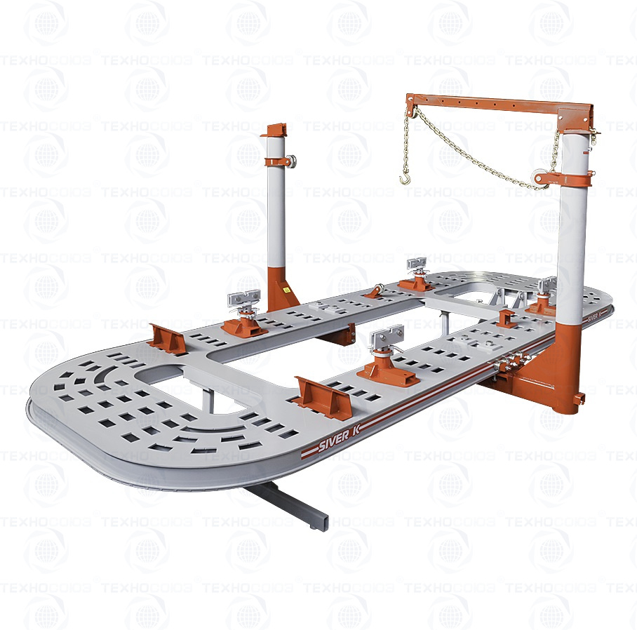 Рихтовочный стенд «SIVER К MAXI» это НОВИНКА!!! Стапель предназначен для восстановления аварийных кузовов транспортных средств. Комплектуется одной или двумя силовыми башнями по 10 тонн. Платформа стапеля изготовлена из высокопрочного стального профиля. Толщина платформы 100 мм.Вдоль всей платформы проходят два ряда пазов для крепления в них фиксирующих стоек, благодаря которым можно закрепить кузов любой конструкции.Платформа имеет выступающие кромки на внешних и внутренних гранях, которые служат рельсовыми опорами для силовых башен.