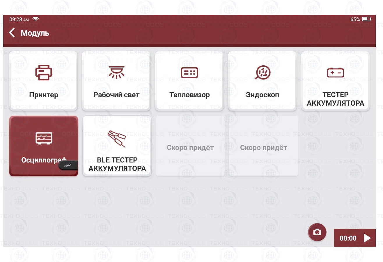• Поддержка дополнительных модулей: Осциллограф, Тестер АКБ, Тестер датчиков TPMS, Видеоэндоскоп